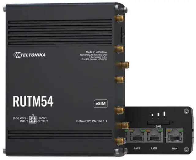 The RUTM54 is a high-performance, dual-SIM and eSIM 5G router, ideal for data-intensive applications that demand reliable, high-speed connectivity. With a global Telit 5G modem, the RUTM54 delivers exceptional connectivity and consistent performance. Its 5 Gigabit Ethernet ports and dual-band Wi-Fi provide robust redundancy, while auto-failover ensures uninterrupted service. With backward compatibility to 4G and multiple interface options, the RUTM54 is designed for seamless expandability and future upgrades.