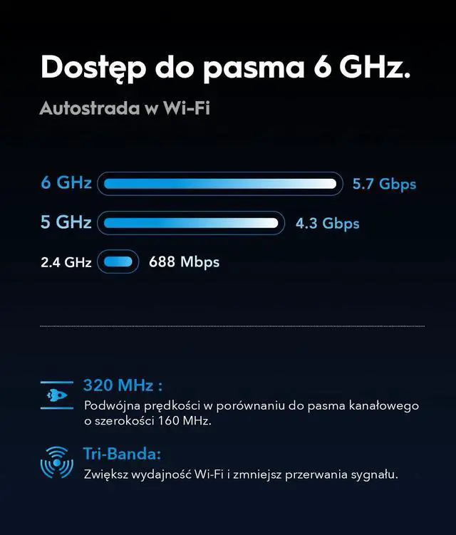 Speed: Features cutting-edge Wi-Fi 7 technology, delivers speeds of 5760 Mbps on 6GHz, 4320 Mbps on 5GHz, and 688 Mbps on 2.4GH z.