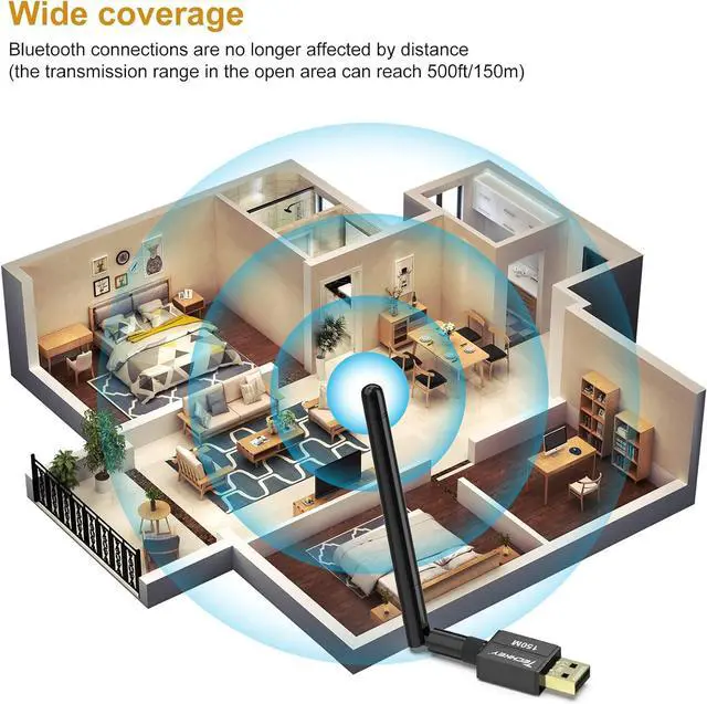 Long Range Bluetooth Adapter: Our USB Bluetooth 5.4 dongle utilizes Class 1 radio technology and features an extended antenna, providing a transmission range of up to 500ft/150m in open areas, ensuring that Bluetooth connections are no longer limited by distance. (Please note that physical obstructions and wireless interference may affect the actual transmission range. )