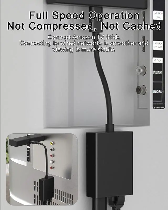 Ethernet Adapter For TV Stick - Our ethernet adapter is designed specifically for Fire TV sticks. With our Ethernet adapter for the Fire TV stick, the Ethernet cable connector can be directly connected to the TV stick, perfectly solving problems such as unstable wireless network connection, weak signal, and delay Let you enjoy a better visual experience.