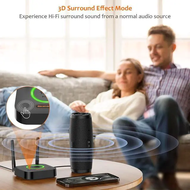 APTX LOW LATENCY&HD&3D AUDIO1Mii B06 Pro Bluetooth receiver for home stereo features Bluetooth 5.1 chip to ensure high fidelity Bluetooth audio signal for music streaming to speakers or home stereo systems that doesnt have the capability. This Bluetooth adapter also supports aptX Low Latency and aptX HD. And the 3D audio can be switched on or off by pressing the 3D button on the Bluetooth audio receiver. The green LED will be on when switched to 3D audio.