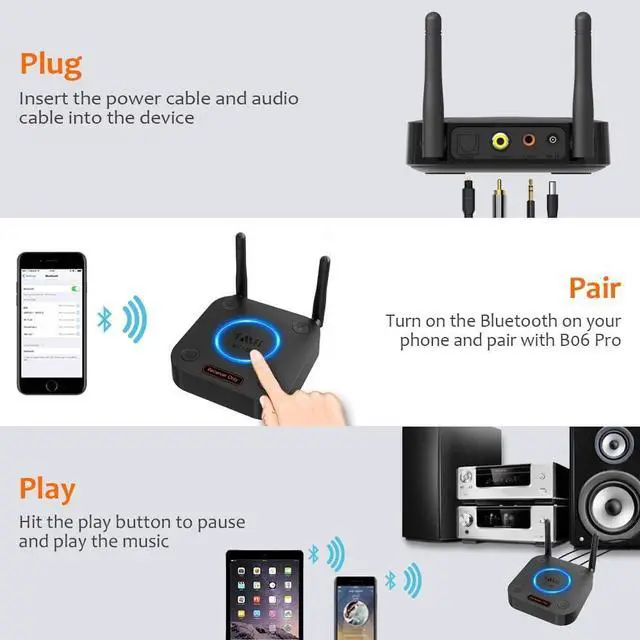 PLEASE NOTE BEFORE PURCHASINGB06Pro is only a BLUETOOTH RECEIVER, to give Bluetooth capabilities to an existing home stereo/powered speaker. ***NOT a Bluetooth transmitter. It CANNOT work with Bluetooth headphones and TVs.