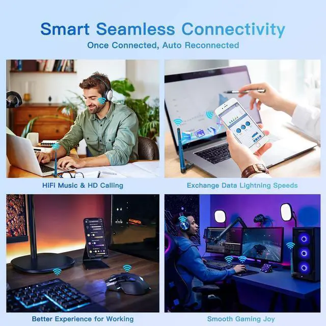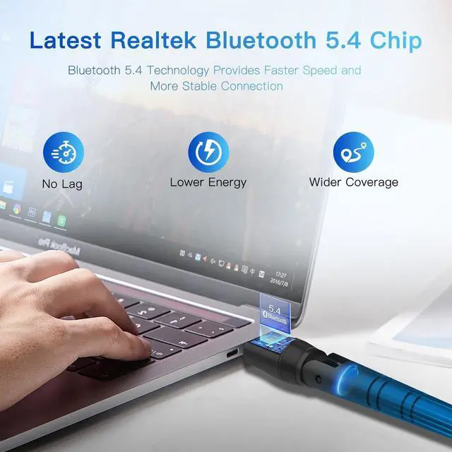 No Lag: This BT54H upgraded Bluetooth 5.4 wireless adapter features EDR technology and Bluetooth Low Energy (BLE) configuration up to 3Mbps, which greatly improves transmission rates and reduces the loss of transmission efficiency due to interference on the 2.4GH z band. Enables faster, no delay wireless data connections between your computer and Bluetooth devices.