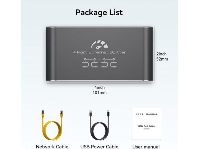 - Plug and PlayThe lan splitter requires no additional software or drivers. It is plug-and-play; simply connect the included Ethernet cable and USB power cable to allow