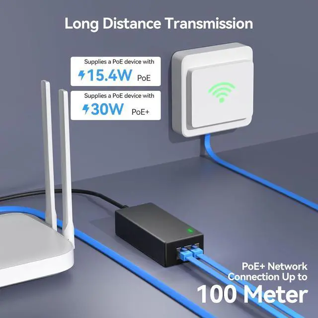 Maximize Coverage: Extend PoE power up to 328ft (100m) using Cat5e/Cat6 cables, ideal for outdoor installations or large warehouses