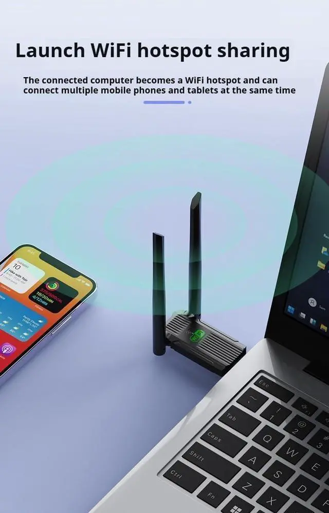 USB wifi adapter with 1300Mbps high wifi speed, faster transmission rate than other WiFi adapters, WiFi speed can reach 867Mbps in 5GHz band and 300Mbps in 2.4GH z band, Upgrade your PCs or laptops to 802.11 b standardsIt will bring you a special high -speed and smooth experience.