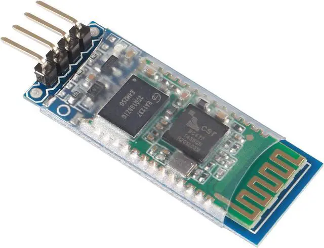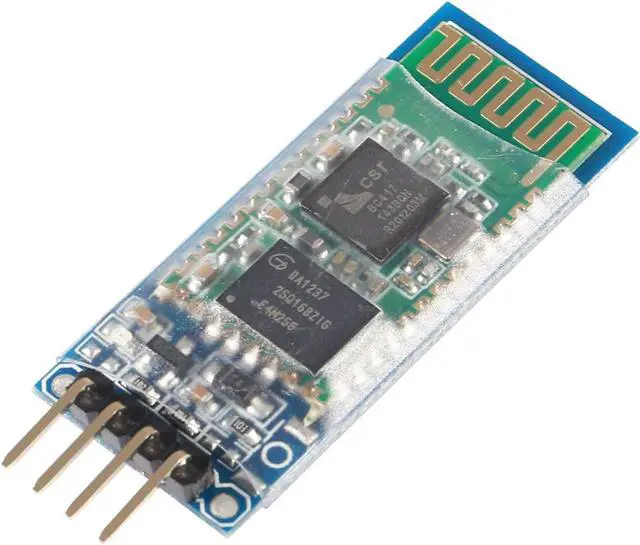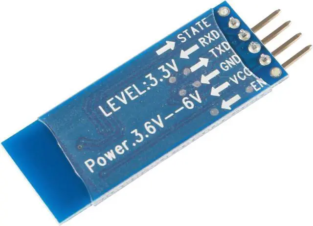 Using HC - 06 from module, which leads to the interface includes VCC, GND, TXD, RXD, reserved LED state output pin, MCU can state whether the bluetooth is connected through the foot, from machine KEY pin is invalid.