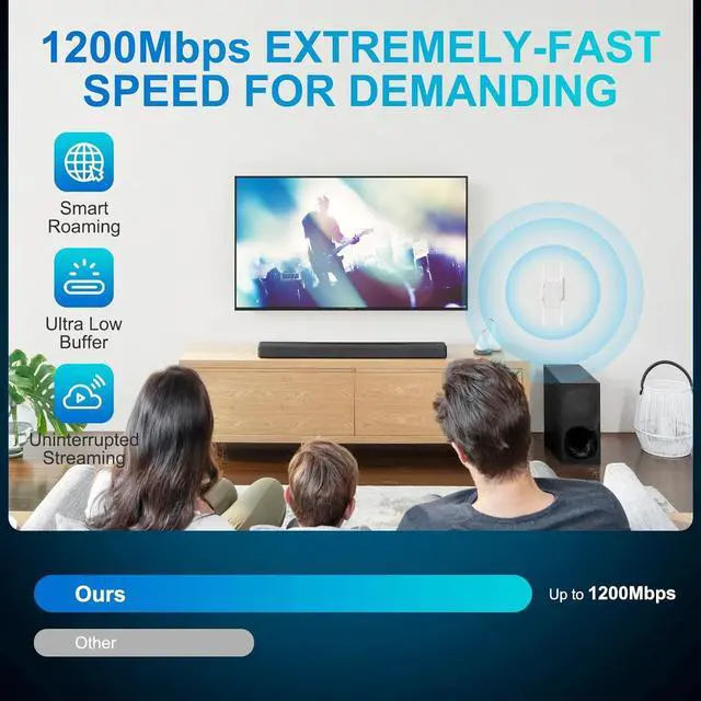 4X Faster with Dual-Core Power Powered by a new-gen dual-core processor and dual-band technology ( 2.4GH z & 5.8GH z), this WiFi extender delivers speeds up to 1200 Mbps for ultra-fast streaming, lag-free gaming, and rock-solid connections