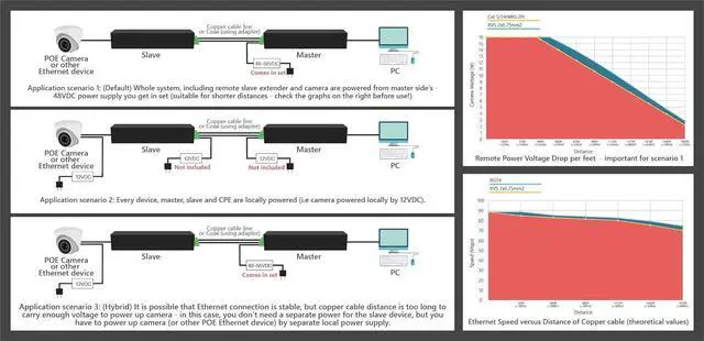 In case of 48VDC local power supply option (48VDC power supply comes in set with) a remote device & even CPE device such as camera will be powered over the same cable pair.;