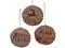 Measures 3 3/4 x 3 3/4 x 1/8 inches each. Made of wood with jute hangers.