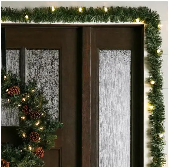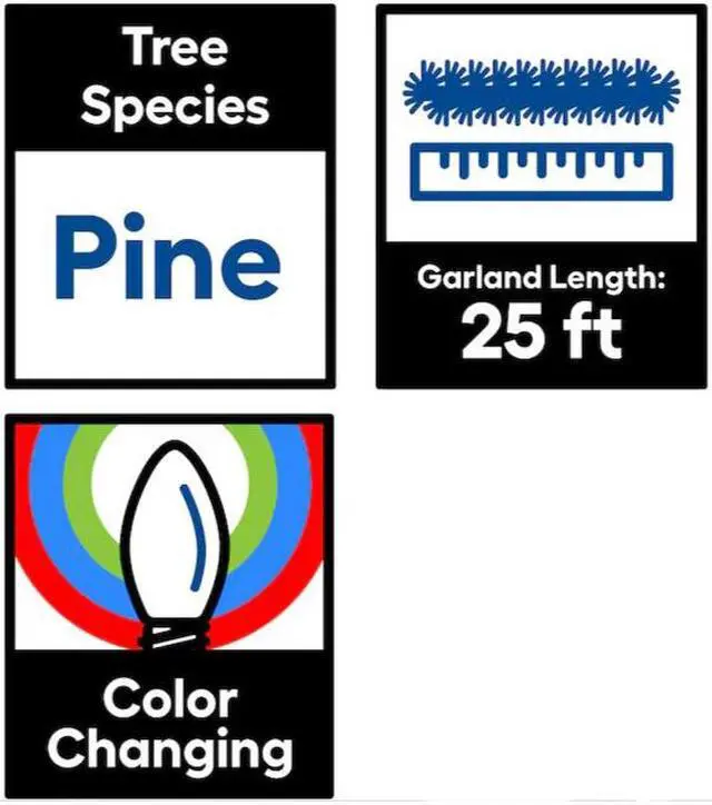 GE 25-foot illuminated artificial garland pre-lit with 50 Color Choice LED C4 color changing lights. Use the control box to choose multicolor lights, warm white lights, or light show settings. 3.5 -Inch diameter and green cord set with coaxial end connector plug.