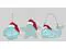 Measures 6 1/2 x 4 1/4 x 1/4 inches each. Made of painted wood with raised, dimensional santa hats. Hangs by attached jute rope and wire. Set of 3 includes one of each design. Made by Young's, imported