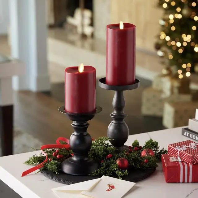 Classic Holiday Pillar Design: Sized at 3" x 6.5", this burgundy candle is perfect for Christmas decorations and holiday home decor, fitting seamlessly into any room without being overpowering.
