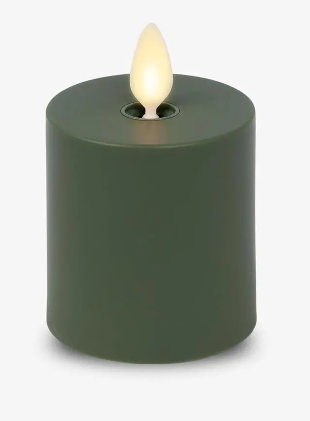 Technology and Material: Showcasing Luminara's patented **Real Flame-Effect technology**, this **IPX4-rated outdoor candle** is crafted from durable plastic, stands at 2" in diameter and 3.2" in height.