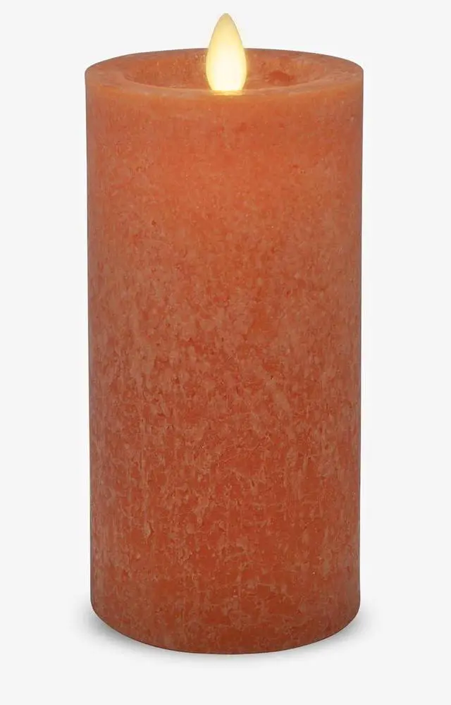 Luminara Sea Glass Flameless Candle, Harvest Pumpkin 3" x 6.5", Moving LED Flame Pillar with Timer, Battery Operated, Real Wax, Unscented Home Décor