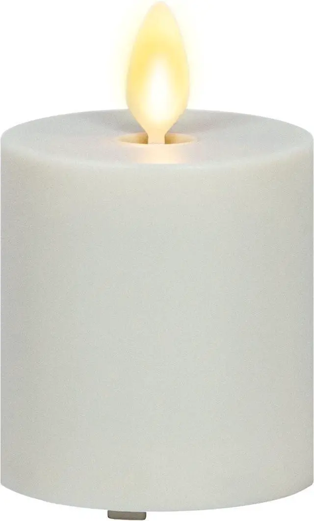 Luminara Outdoor Votive Flameless LED Candle, Pearl Ivory 2" x 3.2", Moving Flame Battery Operated Timer Remote Ready IPX4 Matte Plastic Finish
