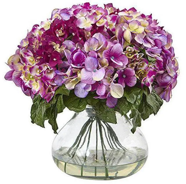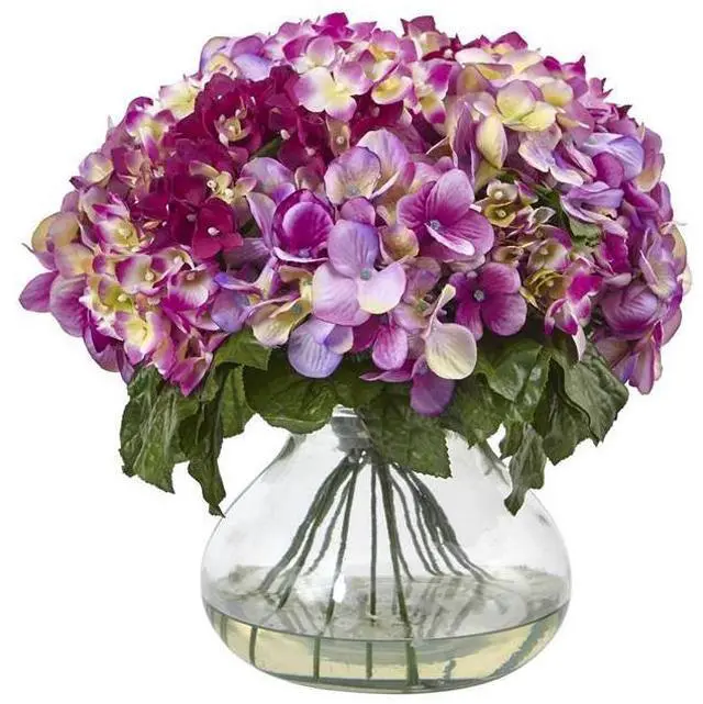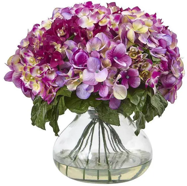 Sometimes, you just have to go big. This hydrangea arrangement is beautiful, bold, and won't take a back seat to anything. Ideal for an area that needs some life, the soft inviting blooms on a bed of lush greenery will certainly fit the bill, while the included vase (with liquid illusion faux water) completes the picture. Ideal for both home and office, this arrangement also makes a fine gift.