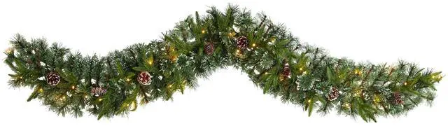Complete your holiday decor with this artificial winter garland, designed from realistic looking pine foliage in seasonal evergreens, all to evoke the Christmas spirit. The 35 LED lights will illuminate any area gracefully. Reaching 6' long to make decorating stress-free, this artificial garland is great for mantles, counters, or banisters, and would undoubtedly complete a traditional holiday setting for years to come.