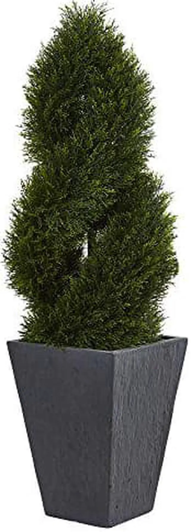 • 4 Cypress Double Spiral Topiary Artificial Tree in Slate Planter UV Resistant (Indoor/Outdoor)