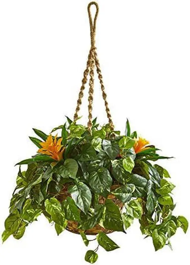 • 31 Bromeliad & Pothos Artificial Plant in Hanging Basket