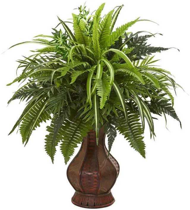 26 Mixed Greens and Fern Artificial Plant in Decorative Planter