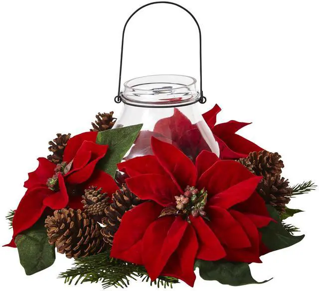 Poinsettia Pine & Pine Cone Candelabrum