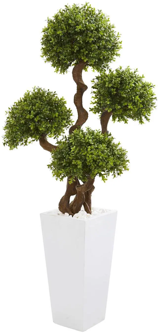 55 Four Ball Boxwood Artificial Topiary Tree in Tall White Planter