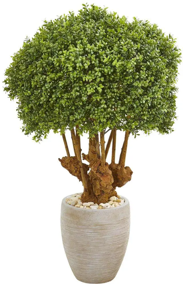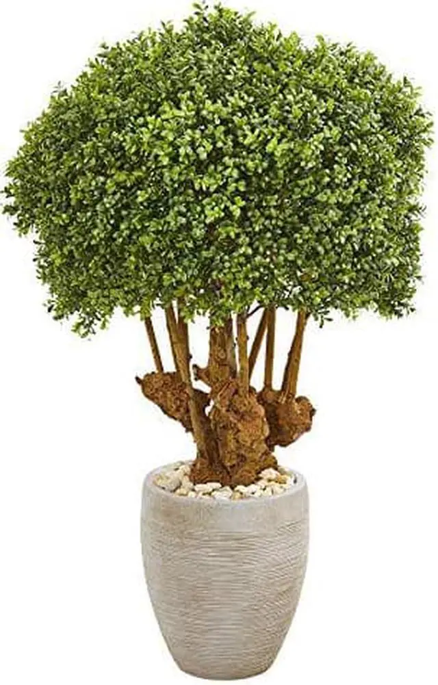 41 Boxwood Artificial Topiary Tree in Sandstone Planter (Indoor/Outdoor)