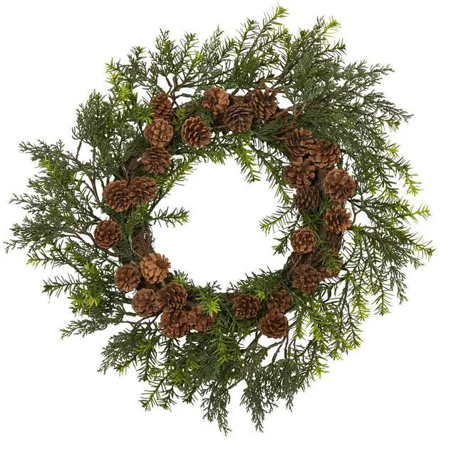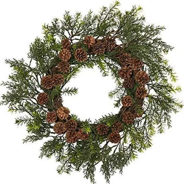 • 22 Cedar, Grass and Pine Cone Artificial Wreath UV Resistant (Indoor/Outdoor)