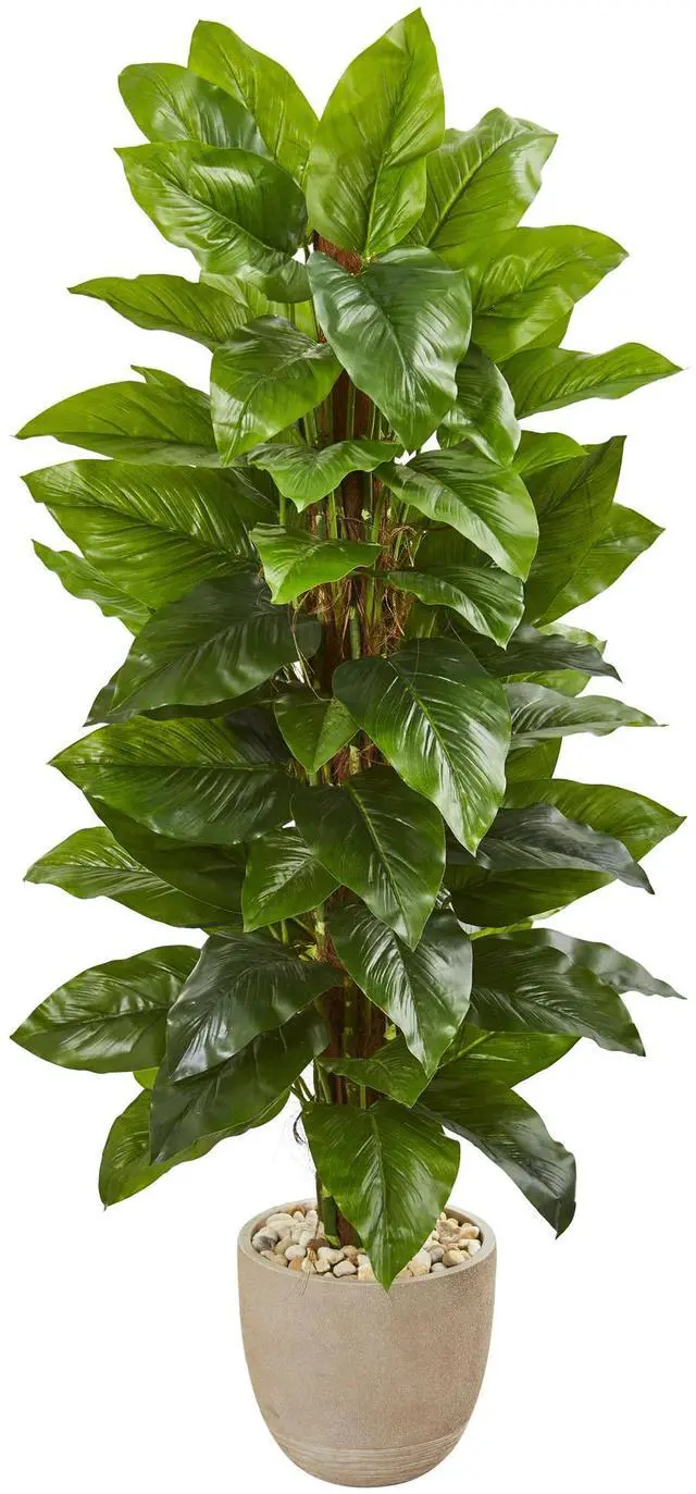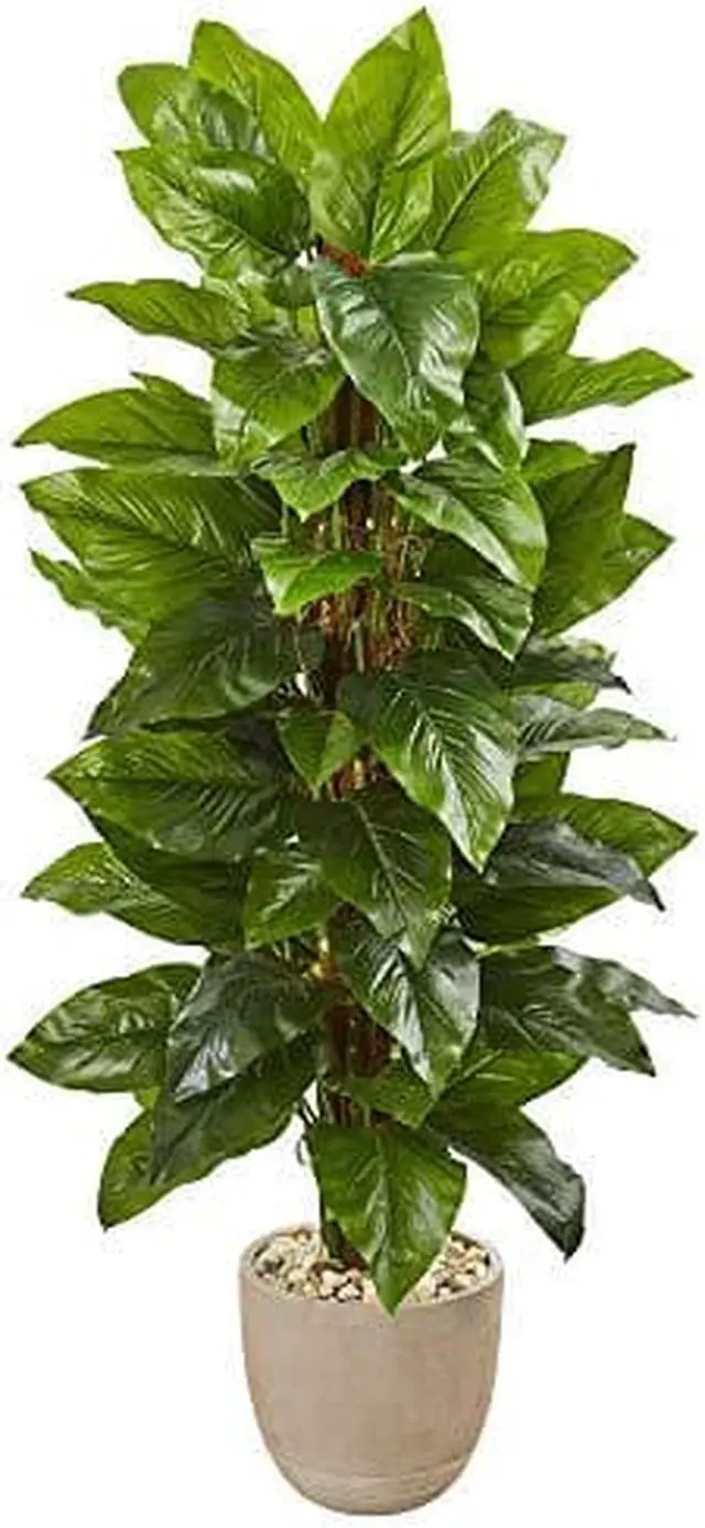 • 58 Large Leaf Philodendron Artificial Plant in Sand Stone Planter (Real Touch)