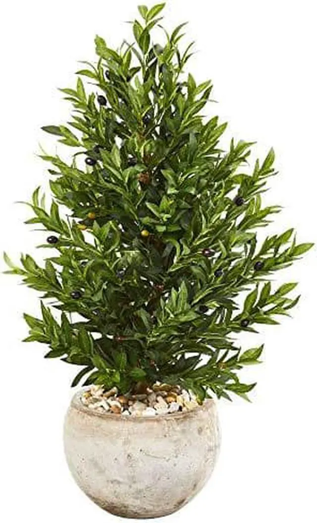 3 Olive Cone Topiary Artificial Tree in Sand Stone Planter UV Resistant (Indoor/Outdoor)
