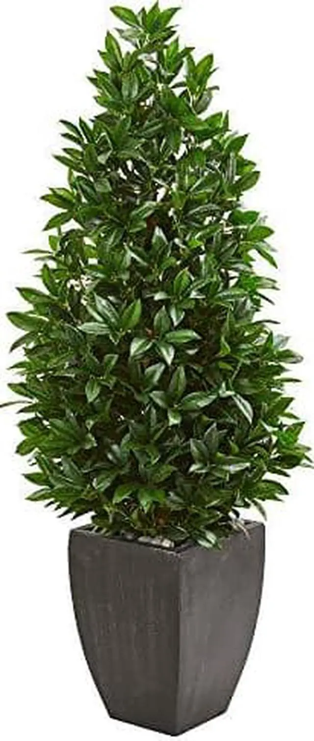 • 56 Bay Leaf Cone Topiary Artificial Tree UV Resistant in Black Planter (Indoor/Outdoor)