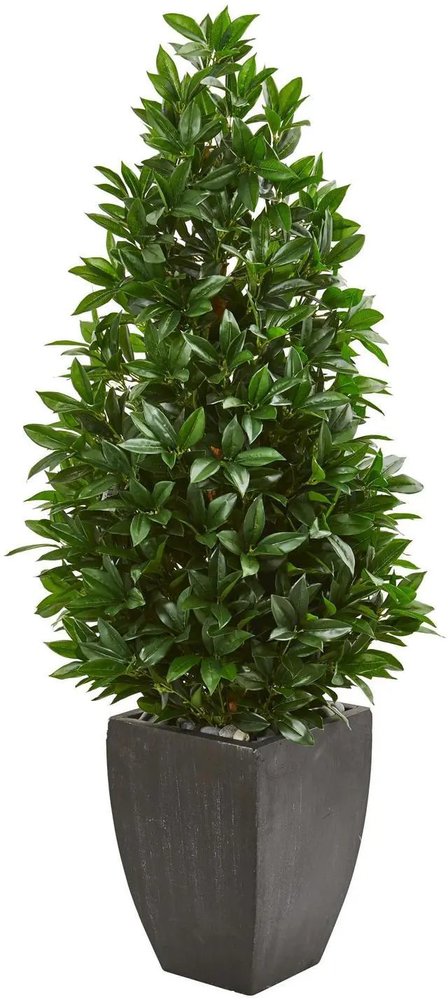 56 Bay Leaf Cone Topiary Artificial Tree UV Resistant in Black Planter (Indoor/Outdoor)