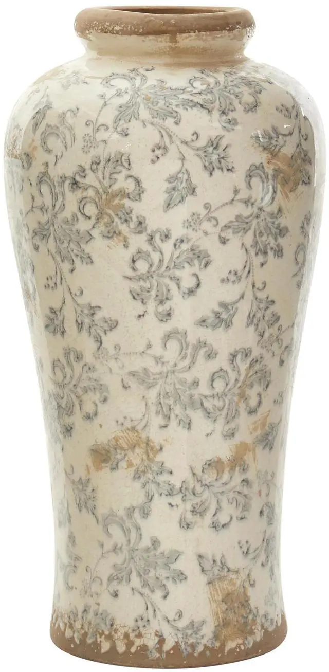 Arrange your fauxbolous flowers in this floral print urn (set of 1). The vintage ceramic planter has a homey feel with its palette of neutral colored flowers against a rugged backdrop. DIY and have fun mix-matching for a country chic look that delivers that fresh farm to home style in an elegant way. No drainage holes and indoor use only.