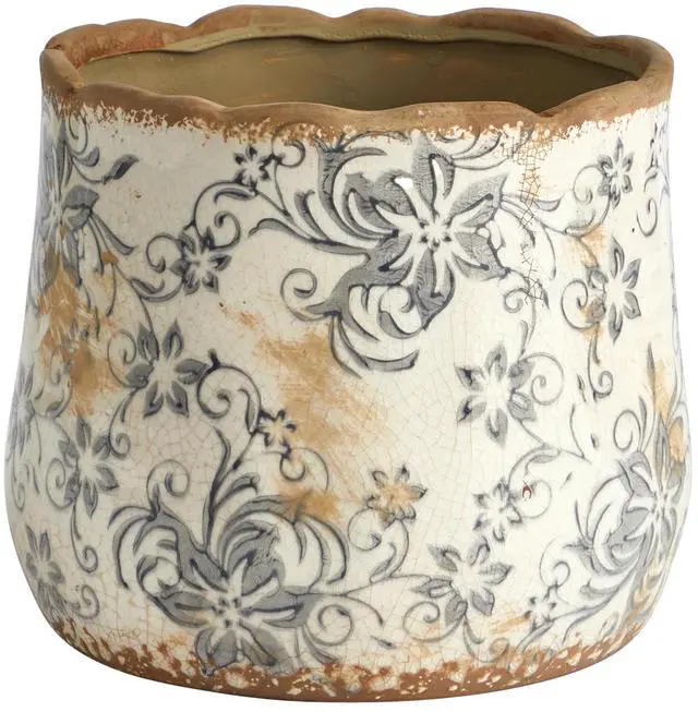 Looks like you just walked into a rustic, antique store with this floral design vase. Artisanal in design, bring cozy, homey vibes with the floral pattern against a rugged square-like silhouette. 7ö in width, pair with your favorite fake flowers for a faux-boulous arrangement. Have some fun and DIY your dream arrangement. No drainage hole and for indoor use only.