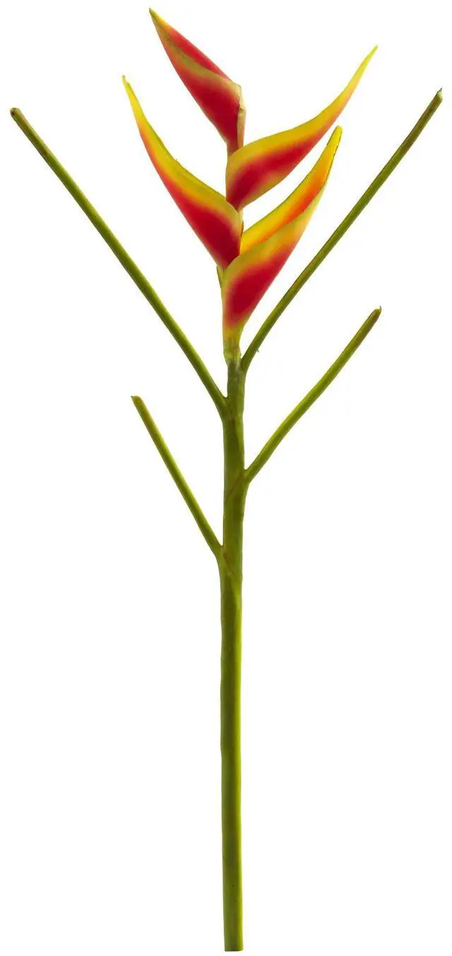 This artificial large heliconia is known for its bizarre appearance; its leaf-like orange blooms with yellow edges and long thin foliage. It comes in a set of four, which can be bundled together and placed in a tall clear vaseùor settle half in your bedroom and the other in the bathroom. Make a colorful and lush arrangement by mixing them with faux flowers and palm branches. You can also arrange them on your dining room table as an elegant centerpiece.