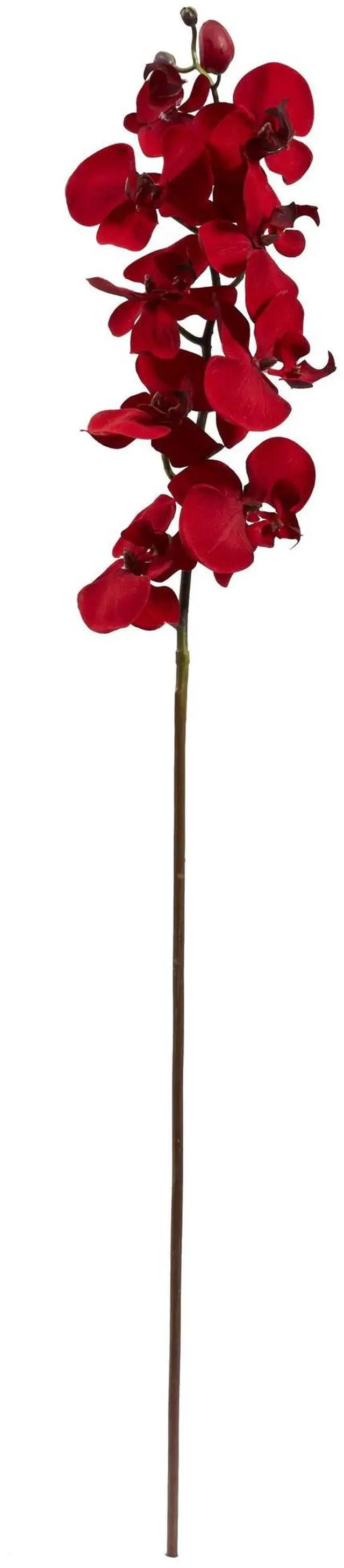 This Christmas phalaenopsis artificial flower doesn't need to be confined to just holiday use! Let this ornament stay all year long to give any room in your house a subtle red accent. Standing at 36-inches, this ornament contains several red petals that sit on a single thin stem. Made from the finest materials, it'll be sure not to wilt when you combine it with a larger centerpiece of lush greenery on a top of a mantelpiece or television stand. Arrives with 4 orchid flowers.