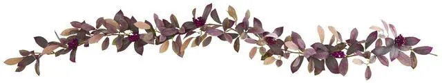 Accent your favorite spaces within the home with the help of this artificial garland boasting a collection of fall-inspired laurel leaves in subtle tones of green and purple. Great for both holiday decor, this 6' long silk garland can be displayed all season long without fear of wilt or discolor.