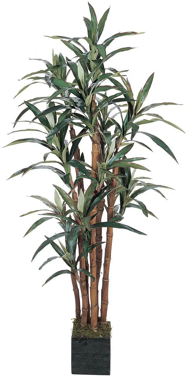 This remarkable 5' Yucca Silk Tree is one you must have for your own! Its 7 trunks support 172 green leaves, many with a red stripe along the border, as well as new growth. Our designers placed it in an attractive wooden pot topped off with green moss. Display this gorgeous silk Yucca tree by itself, or make it the centerpiece of an indoor garden!