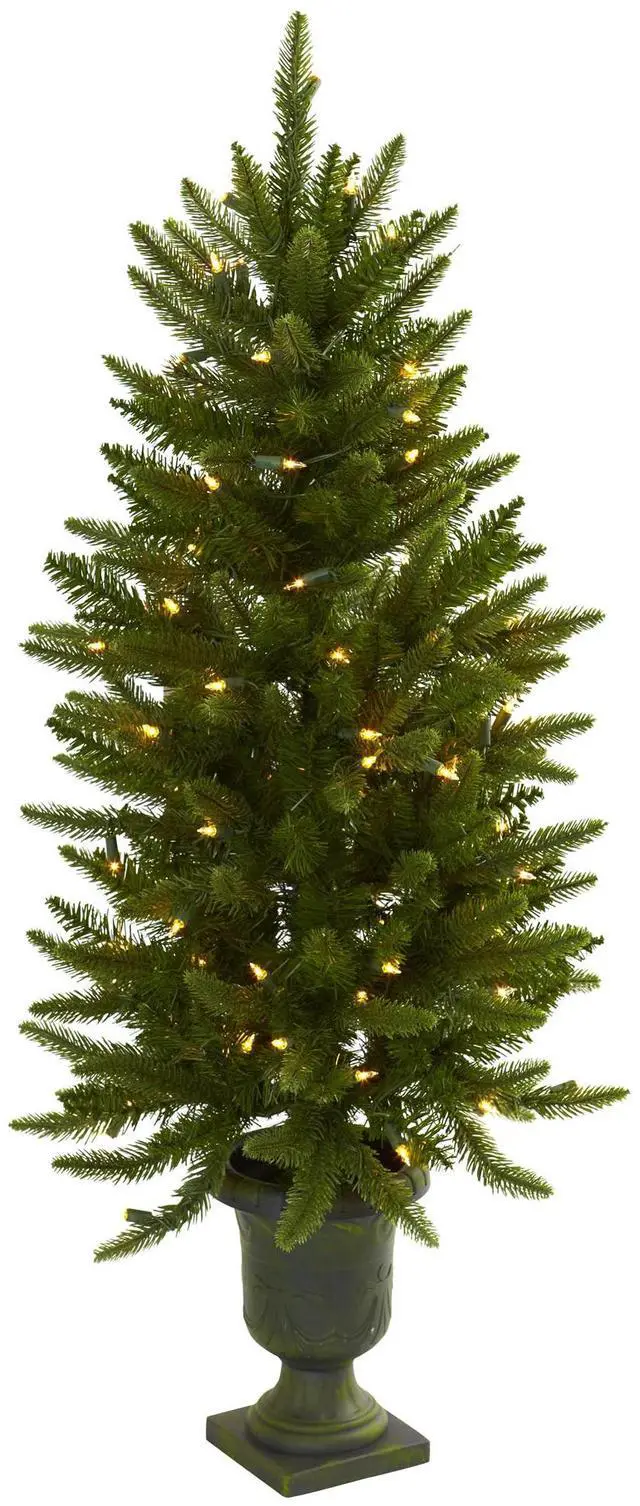 Here's a piece that's destined to become your favorite holiday decoration. This faux Christmas tree stands 4' high in its decorative urn, and comes with 100 clear lights. The best part is the lights will stay on if one burns out, ensuring this tree will light your holiday spirit for years to come. Perfect for home or office holiday decorating, it makes a great gift as well.