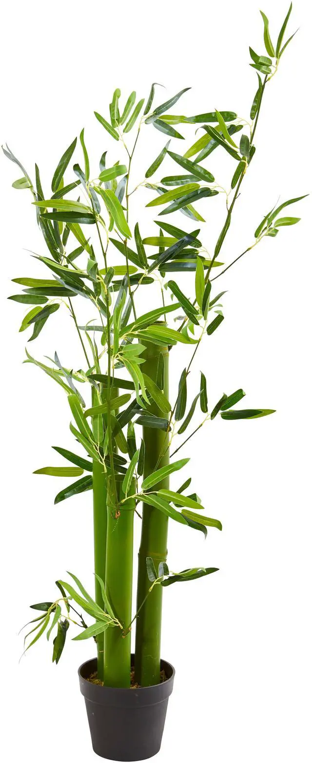 The small green leaves that extend off of the three large stalks on this artificial bamboo tree add a dainty touch to this 5-foot piece. Place it among other faux plants for an added layer of detail in a designated indoor garden. Or, use this piece to accentuate any furniture pieces by placing it on a side table near a couch or love seat.