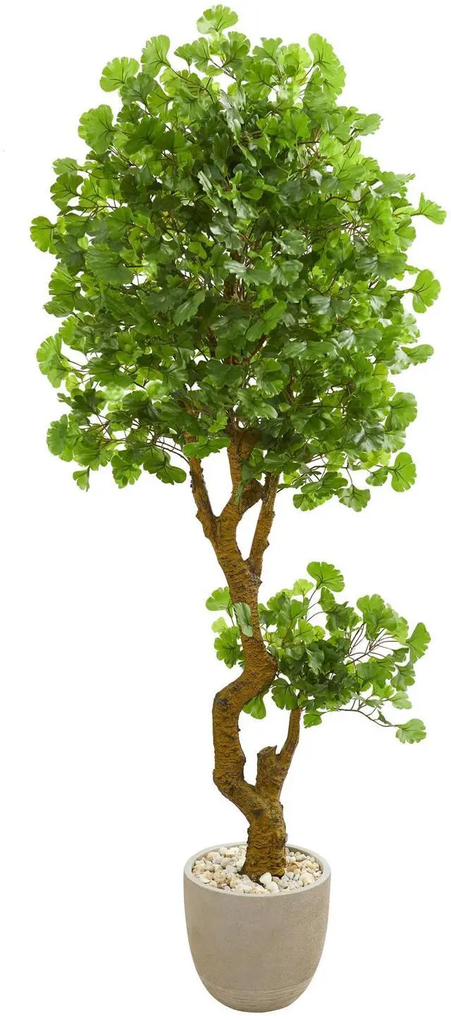 Crafted for a lifelike appearance, the artificial jingo tree's trimmed and delicate green foliage is UV-resistant and can be used to decorate either an indoor or outdoor landscape. It comes in a sand colored planter with white natural river rocks for a complete and polished finish. Bring this 6-foot tall ornament into your waiting room or reception area to freshen up the space.