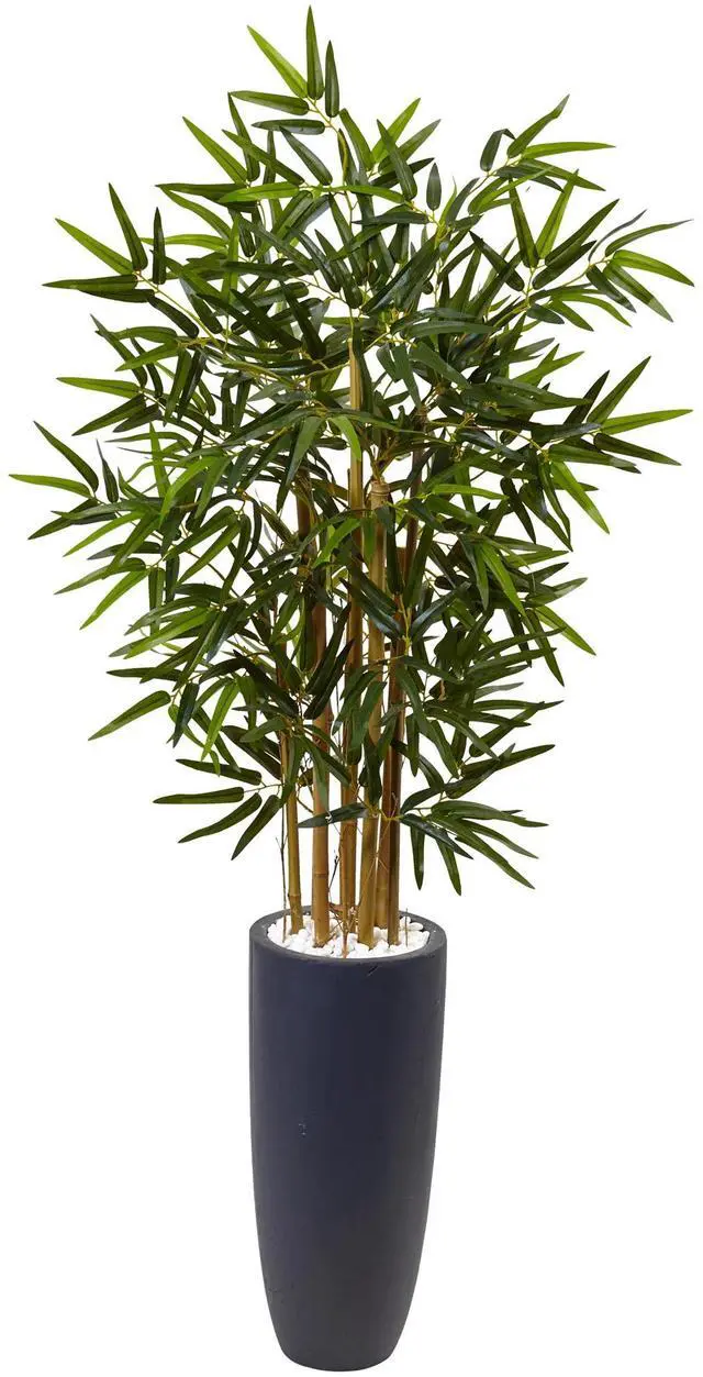 This striking faux bamboo tree is a perfect addition to your office, living room, or entry way. It includes an artful cylinder planter in a masculine grey and river rocks, so it's a rad addition to your decor. Best of all, this bamboo is truly lifelike with thick stalks and numerous lush leaves.