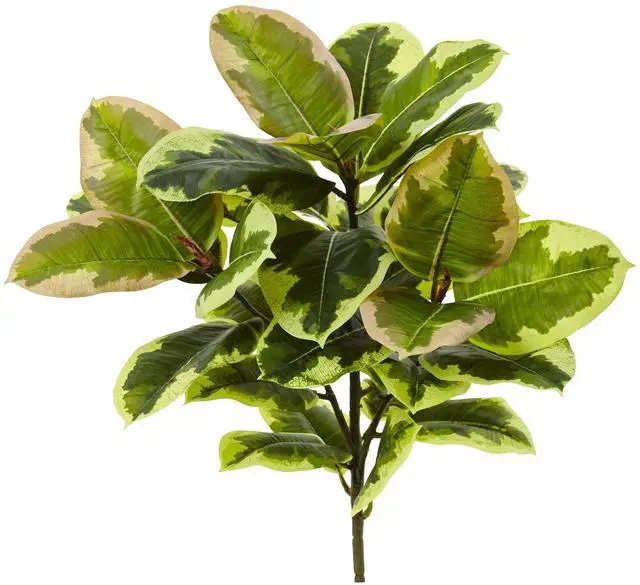 The foliage of the artificial rubber leaf plant are real to the touch. So much so, you'll probably have a hard time believing that it is, in fact, artificial. The leaves are multihued with green concentrated at the center, which eventually blends out seamlessly into a lighter color around the edges. Unique in appearance, it'll look stunning in your small reading nook. Arrives with three individual plants.