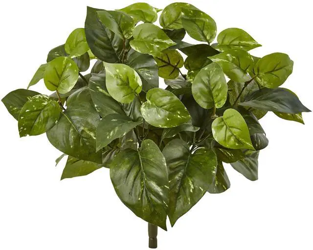 The 16-inch artificial pothos plant contains smooth edged, silky leaves that are packed together for a lush arrangement. Arranged in a v-shape formation above a single stem, it's dense foliage will bring the outdoors into your bathroom. It comes in a set of six, which can be used to add more volume and flair to the already impressive artificial bush.
