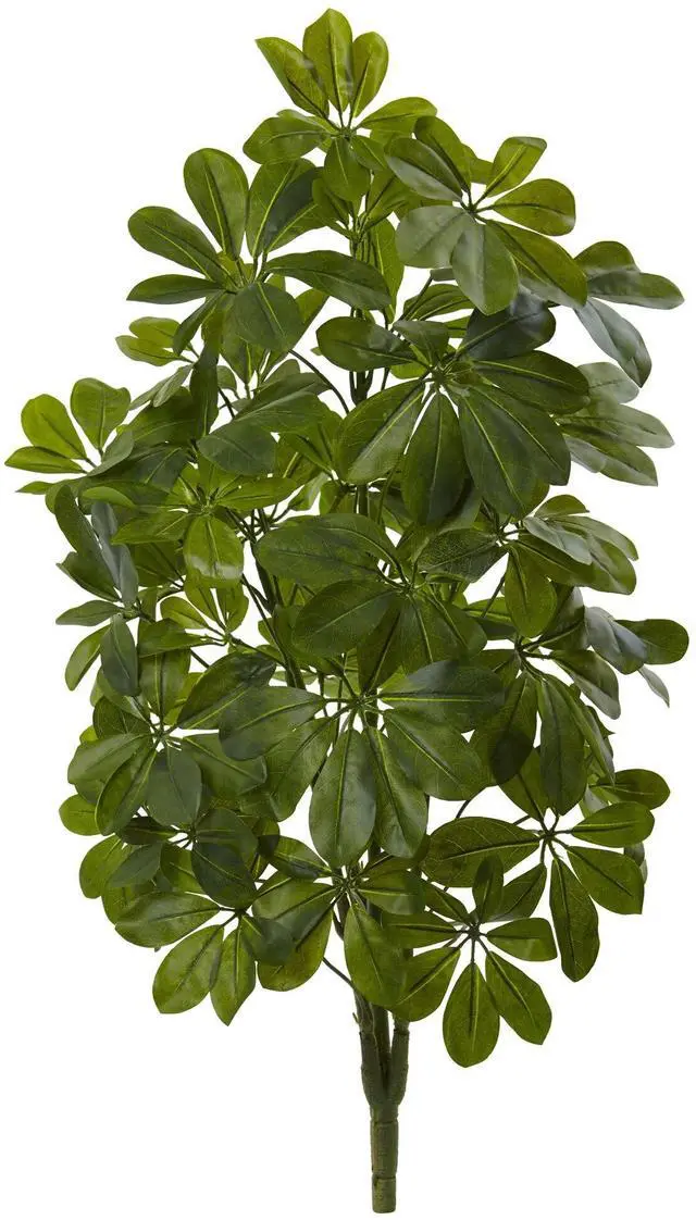 Silky and real to the touch, the green foliage of the artificial green baby schefflera plant is breathtaking. Carefully crafted for a lifelike appearance, each branch of this plant holds five or more smooth edged leaves and have a noticeable sheen and luster to them. Add this piece to your bedroom decor as a centerpiece for your dresser for a natural finish.