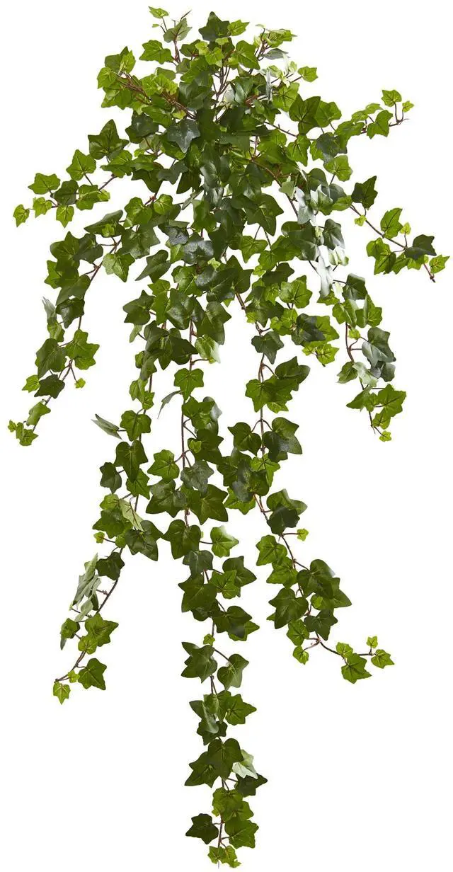 Copious amounts of small green leaves spill downward at various lengths with this 36-inch curly ivy artificial hanging bush. For a fuller decorative piece, place the included set of three together in a hanging basket and allow them to beautifully complement any paintings or mirrors on your living room's wall when hung beside them.