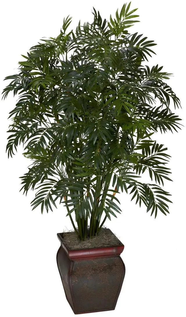 Bring the tropics to your home or office with this elegant mini bamboo palm silk plant. Featuring a bevy of stalks jutting skyward, and thousands of fronds just waiting for a tropical breeze, this palm will have you reaching for a Pina Colada every time you look at it. But we're not done û it comes in a beautiful decorative container that adds a touch of class. Perfect for any home or office that needs some sunshine and summer fun!