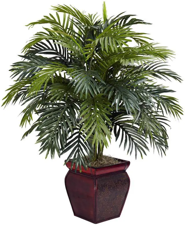 Billowy, wispy, and wonderfully wild, this gorgeous Areca plant will demand attention no matter where you choose to put it. With beautiful faux fronds and leaves bursting out of a handsome vase in every conceivable direction, it adds a touch of boldness to any dTcor, without ever needing water! This Areca makes a great accent piece, or an ideal office decoration.