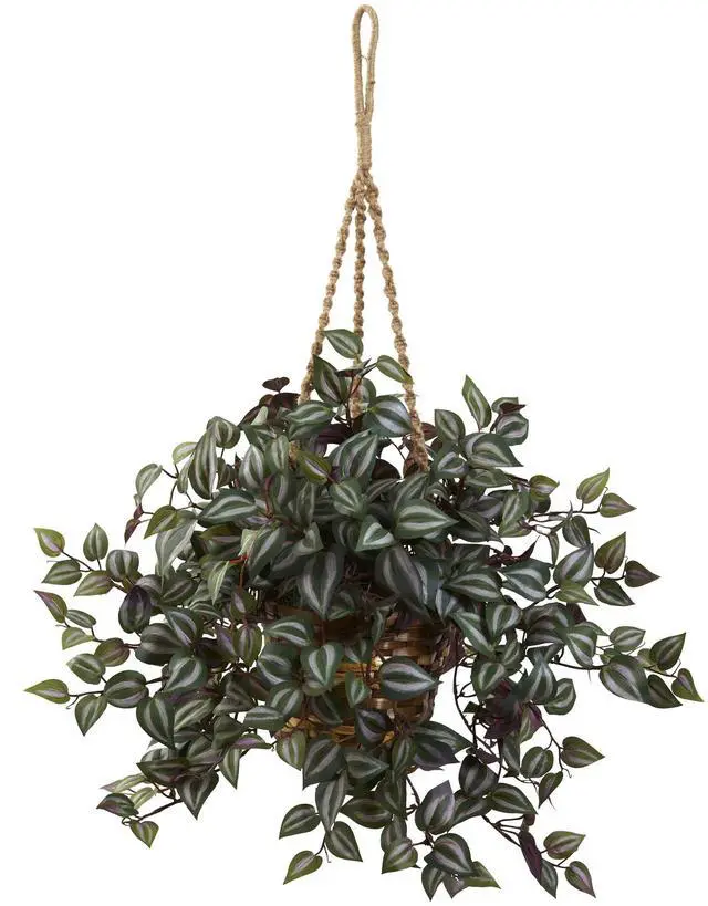 The Wandering Jew is one of nature's most interesting plants, and a decorating favorite. And this lovely re-creation perfectly captures that natural splendor, and packs it into a beautiful hanging basket. But the best part is, you won't have to get on your tippy-toes to water it, and you'll never need to trim it (because being a silk plant, it won't "wander"! ) Ideal for home or office, this piece makes a thoughtful gift as well.